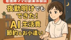 看護師の悩み 【看護師ママの副業体験談】夜勤明けでもできた!AIで生活費節約&お小遣い稼ぎ